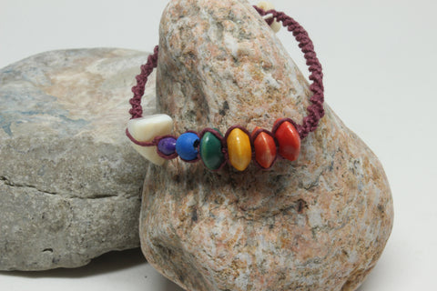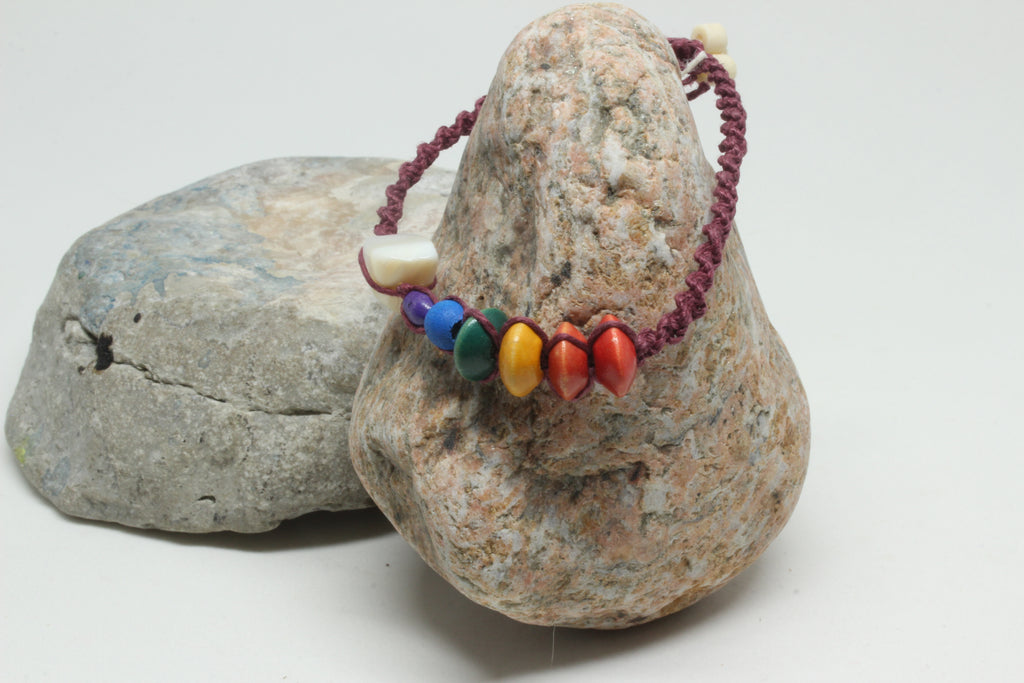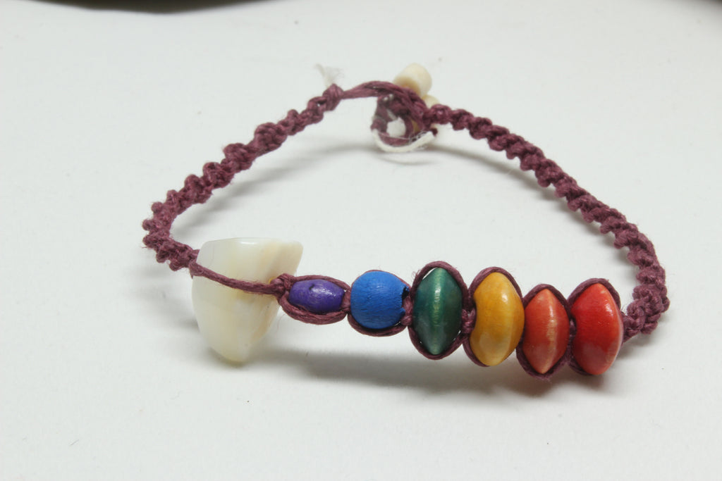 Seashell Chakra Bracelet Eco-friendly organic hemp | colouredHandmade with thrifted coloured wooden beads + real seashell beadAll materials are locally sourcedApprox. 6.5" in total lengthCrafted: August 2017