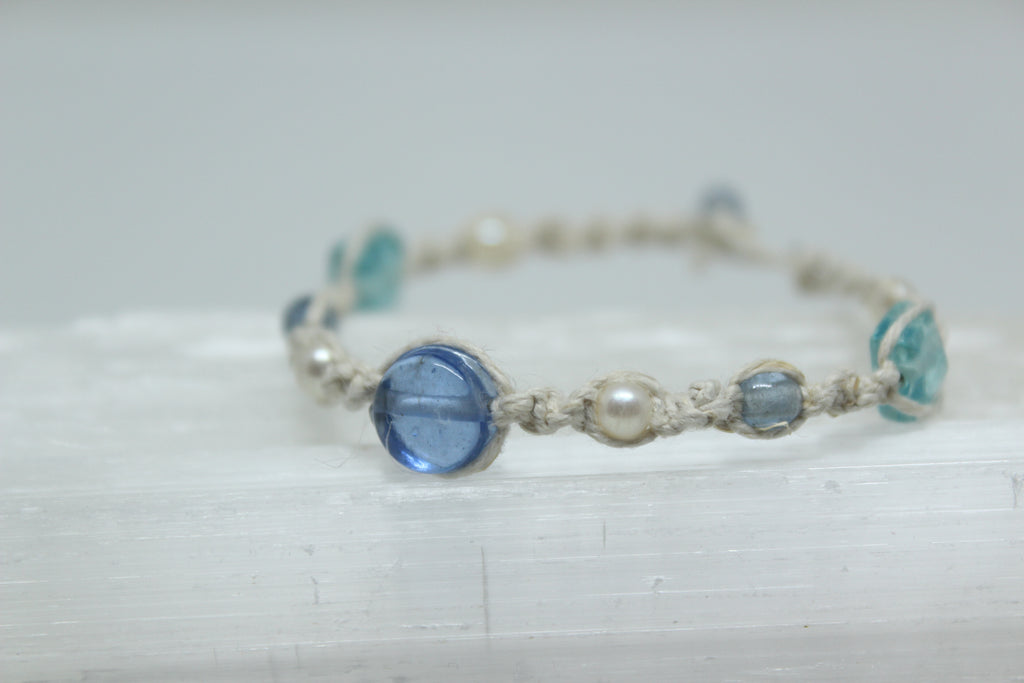Real tumbled pearl beads with Mexican glass beads. All materials locally sourced. Beautifully weaved with hemp creating a timeless and soft piece of jewelry.