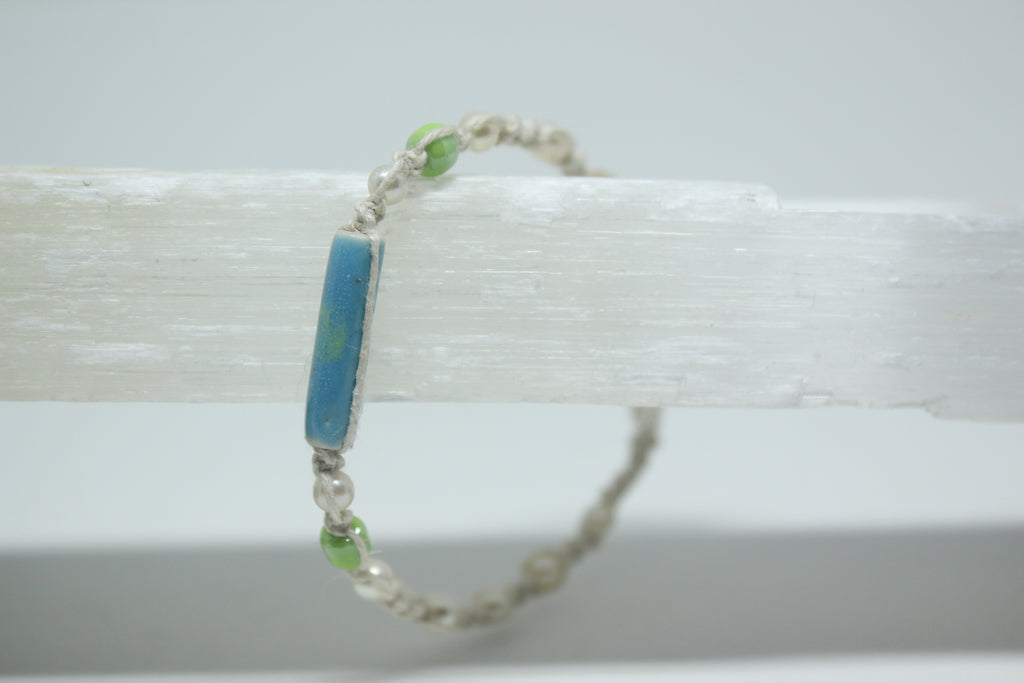 Real tumbled pearl beads with ceramic and glass accents. All materials locally sourced and up-cycled to create a beautiful and soft new piece of jewelry.