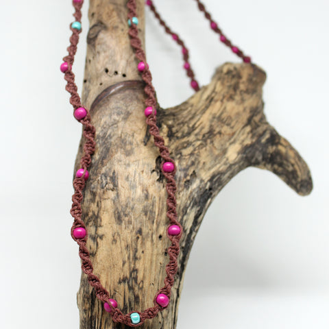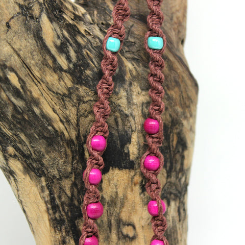 Handmade with thrifted magenta wooden and turquoise glass beads