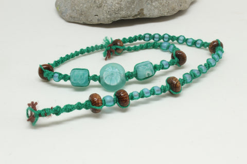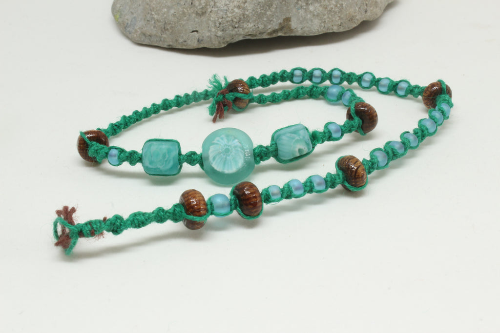 Wrap Bracelet Eco-friendly organic hemp | colouredHandmade with thrifted glass and wooden beadsAll materials are locally sourcedApprox. 14.5" in total length