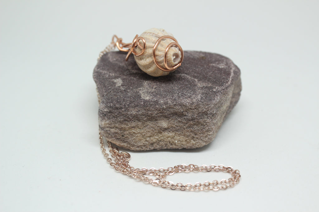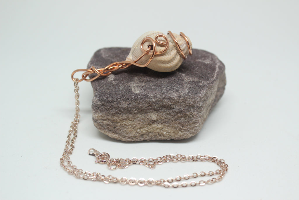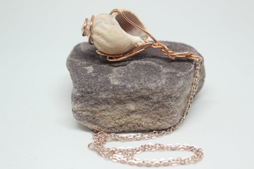 Wire Wrapped Rose Gold Real Seashell Necklace. All materials locally sourced, thrifted seashell from local market. Wire wrapped and hooked to compliment the curves of the shell.