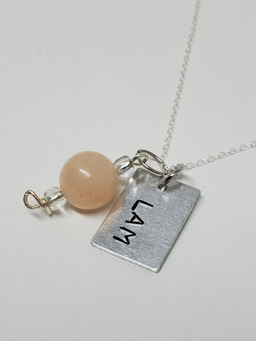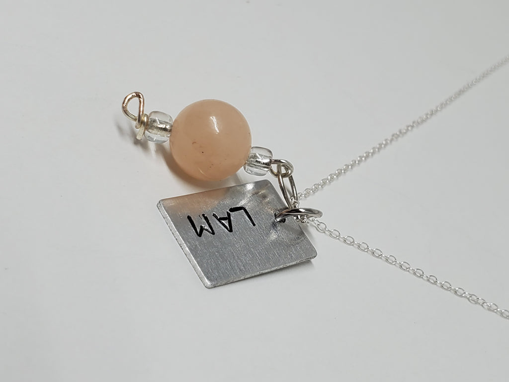 Sunstone & glass beads + hand stamped Chakra Mantra tags <3