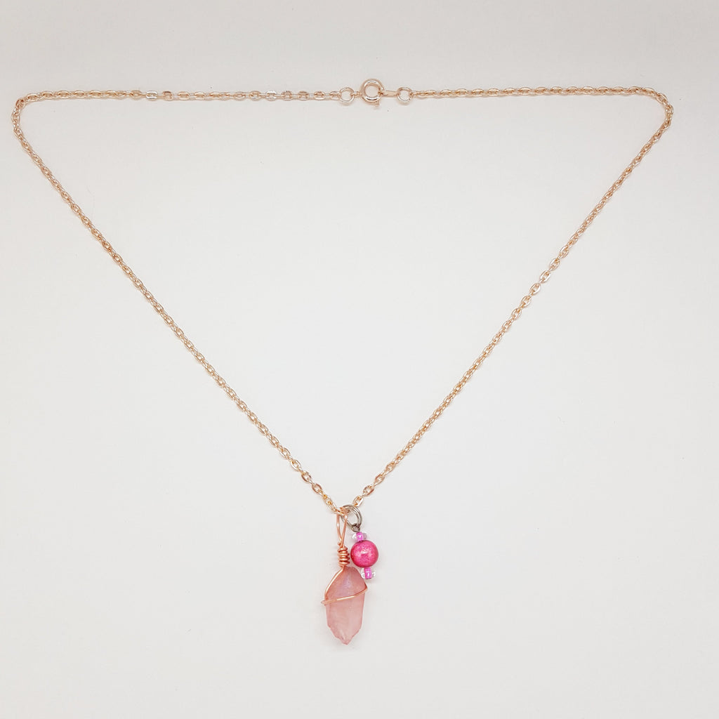 Rose quartz paired with a set of sweet glass beads. Inspired by the love and joy of colour.