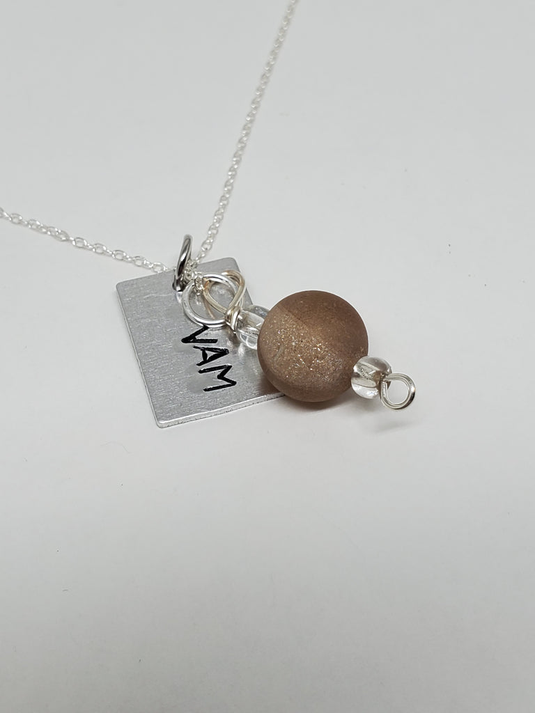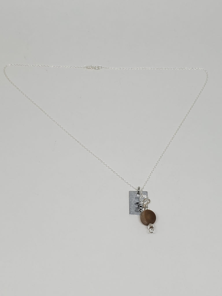 Druzy, glass beads + Hand stamped Chakra Mantra tag <3