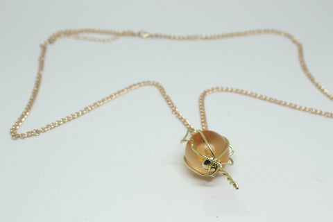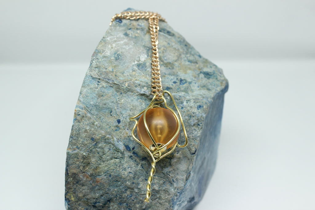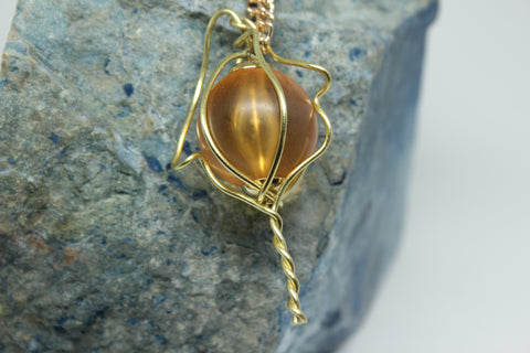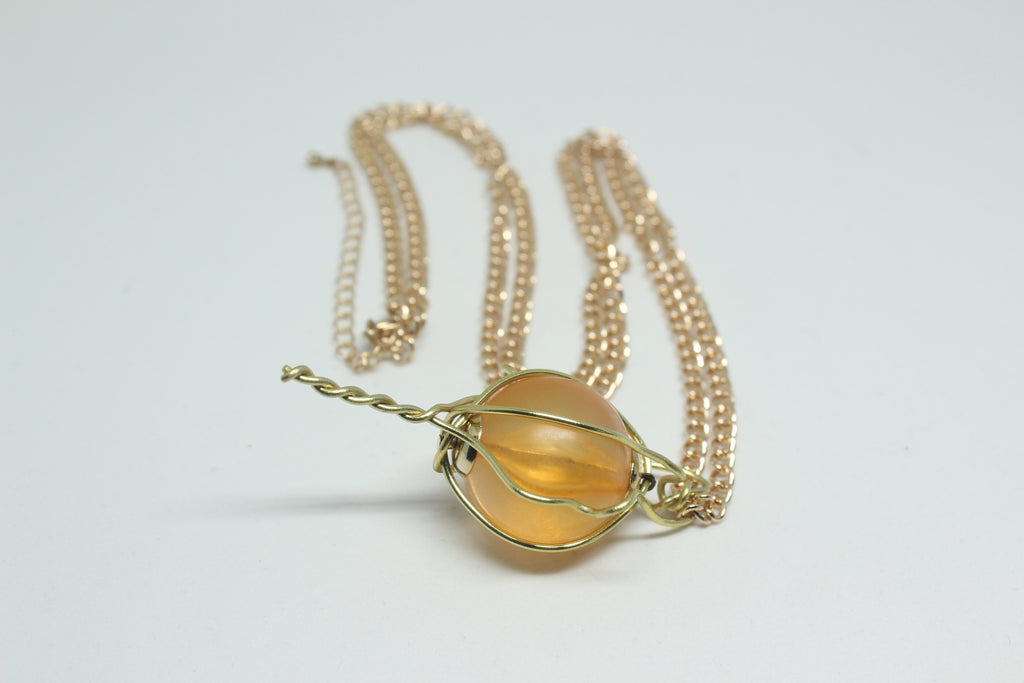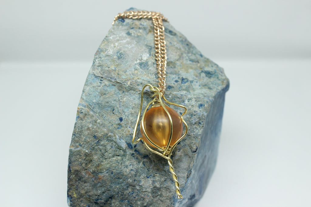 Gold Wire Wrapped Yellow Lantern Necklace. All materials locally sourced, thrifted pendant from local market hand wrapped with 18 gauge gold wire creating a magical and light weight lantern. Reminiscent of the golden snitch. Wire edges sanded down to be smooth to the touch.