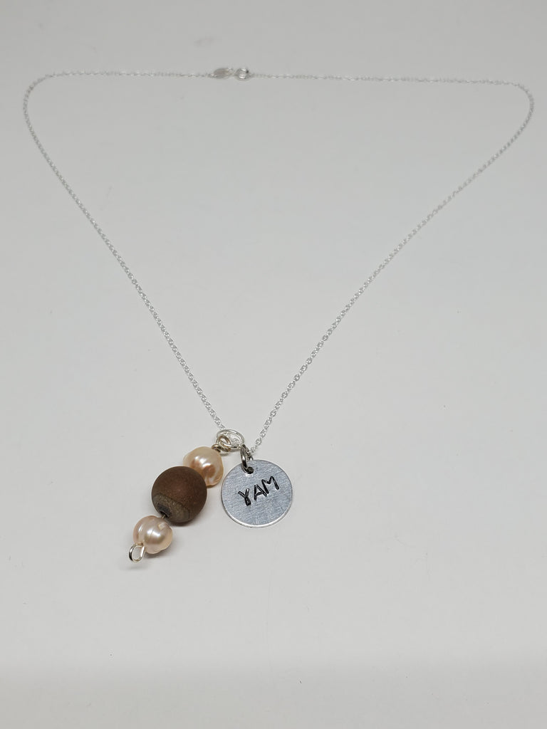 Druzy & Pearl+ Hand stamped Chakra Mantra tag <3